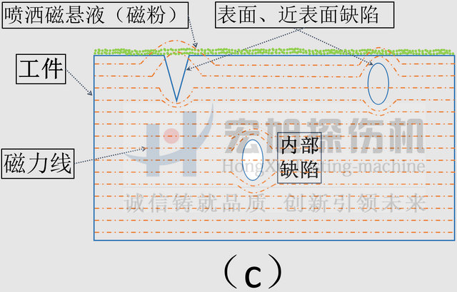 簡單的講:通過午夜福利三级片將鐵磁性零件充磁,鐵磁性零件的缺陷處就會形成N/S極,利用磁鐵異性相吸的原理在這缺陷處就會吸附磁粉形成可用肉眼觀察的磁痕。